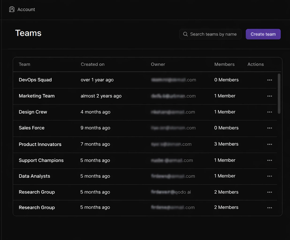 From the team’s Actions menu, select View team members to see all users assigned to the team.Rename a team