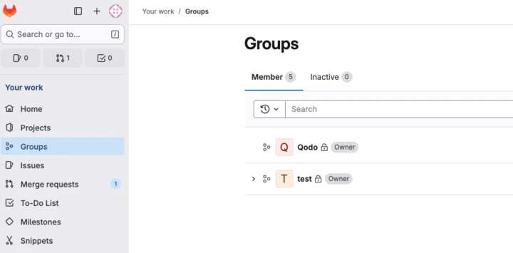 - Open a new merge request in one of the projects within the selected group where Qodo was configured.