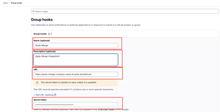 https://qodo-merge.yourcompanyname.st.qodo.ai/webhook) - Secret token: The shared secret you created in Step 2