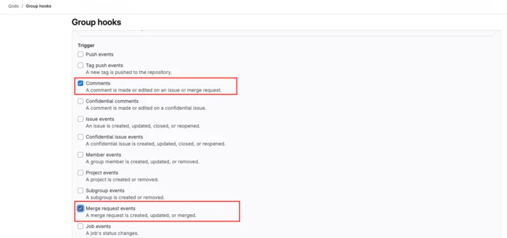 If Qodo is not responding:- Verify that the merge request is opened in a repository that is included in the configured group or project scope.