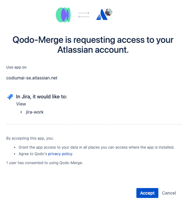 For Jira Cloud instances using app authentication:- Install the Qodo app on each Jira Cloud instance you want to connect.