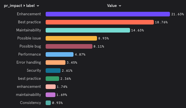 Explanation: This chart illustrates the distribution of implemented suggestions across different categories, enabling teams to better understand Qodo's impact on various aspects of code quality and development practices.