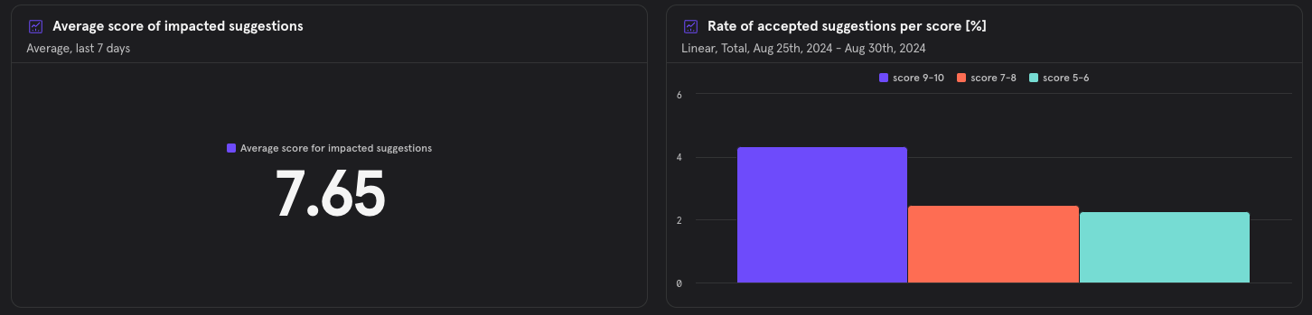 Accounts for PR Variability and Incentivizes Quality: This metric addresses the fact that "Not all PRs are created equal." By normalizing against lines of code rather than PR count, you account for the variability in PR sizes and focus on the quality and impact of suggestions rather than just the number of PRs affected.