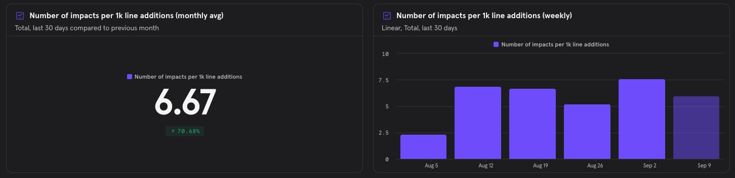 Standardized and Comparable Measurement: By measuring impacts per 1K lines of code additions, you create a standardized metric that can be compared across different projects, teams, customers, and time periods. This standardization is crucial for meaningful analysis, benchmarking, and identifying where Qodo is most effective.