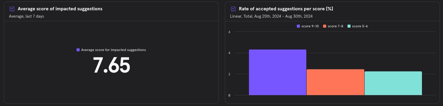 Accounts for PR Variability and Incentivizes Quality: This metric addresses the fact that "Not all PRs are created equal." By normalizing against lines of code rather than PR count, you account for the variability in PR sizes and focus on the quality and impact of suggestions rather than just the number of PRs affected.