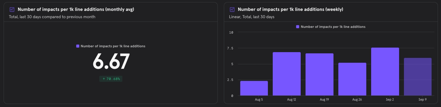 Standardized and Comparable Measurement: By measuring impacts per 1K lines of code additions, you create a standardized metric that can be compared across different projects, teams, customers, and time periods. This standardization is crucial for meaningful analysis, benchmarking, and identifying where Qodo Merge is most effective.