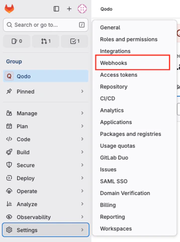 If you wish to limit the scope of Qodo Merge to a specific Gitlab project (repo) you can complete the same above steps (steps 1-4) just at the project level. You can repeat this for multiple projects, however for each project the webhook secret needs to be unique (and provide all the information to Qodo team for EACH project)