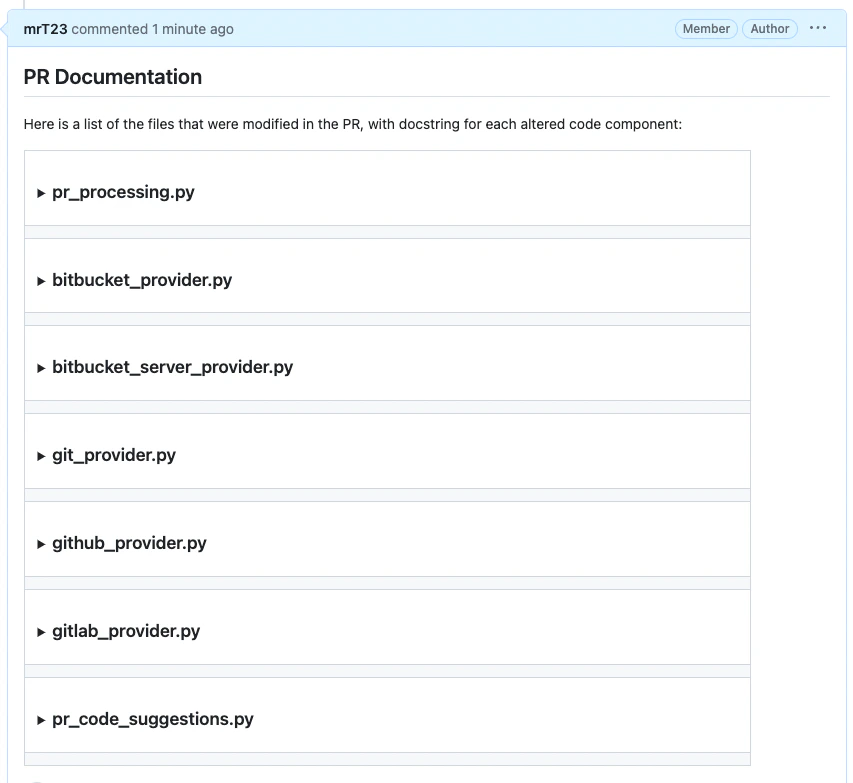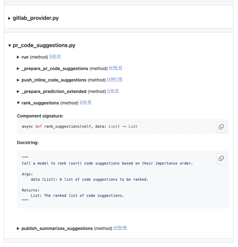 add_docs tool scans the PR code changes, and automatically suggests documentation for any code components that changed in the PR.